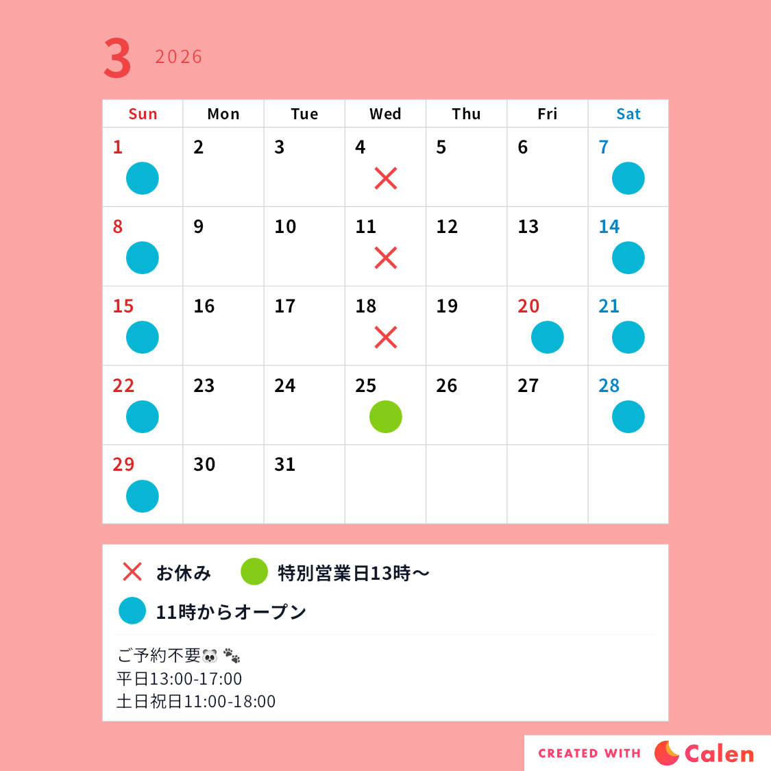 2026年3月8日 / 最終更新日時 : 2026年3月8日 広報担当 お知らせ 3月4月の営業日のお知らせ いつもマシュマロパンダをご利用頂きありがとうございます。 3/25(水)と4/1(水)は13時から特別営業します! 春休みも是非ご来店ください。 ご来店お待ちしてます。 FacebookXBlueskyHatenaLINECopy